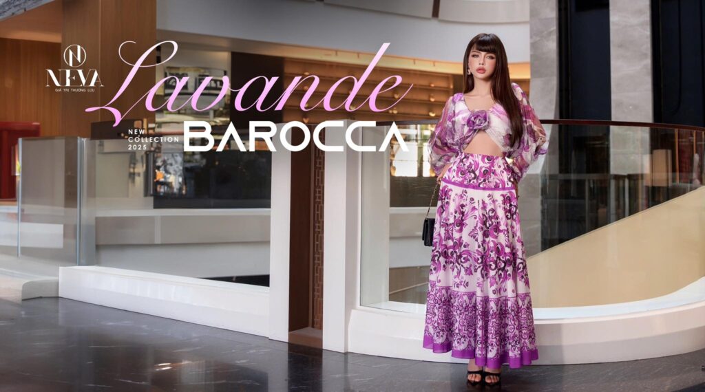 Từ những cung điện Ý thế kỷ XVII, nghệ thuật Baroque mang đến các đường cong xoắn tráng lệ, hoa văn uy nghiêm, khắc họa quyền lực và sự huy hoàng. Khi chạm vào sắc tím Lavande màu của hoa oải hương thanh tao tinh thần ấy trở nên mềm mại, nữ tính, nhưng vẫn giữ nguyên sức nặng của sự sang trọng. Đó là khí chất của nữ hoàng: không cần phô trương, chỉ bằng hiện diện đã đủ làm thế giới cúi mình.