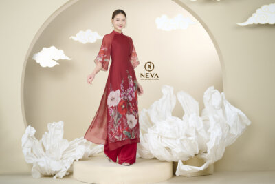 – Kiểu dáng: áo dáng eo cách tân với phần tay loe lỡ, áo thiết kế 2 tà bay bổng, cổ tầu bản nhỏ , kéo khóa sau.