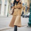 Chân váy midi nâu dập nhăn 22F2W320671T019