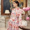 Đầm midi nơ cổ tùng dập li in hoa 22F3W440664H021