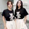 Áo phông đen in hình gấu hoa 24S1W500800T010