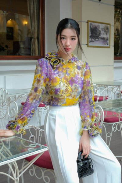 Áo sơ mi cổ bèo nhún Celestial Radiance 24S1W140802H016