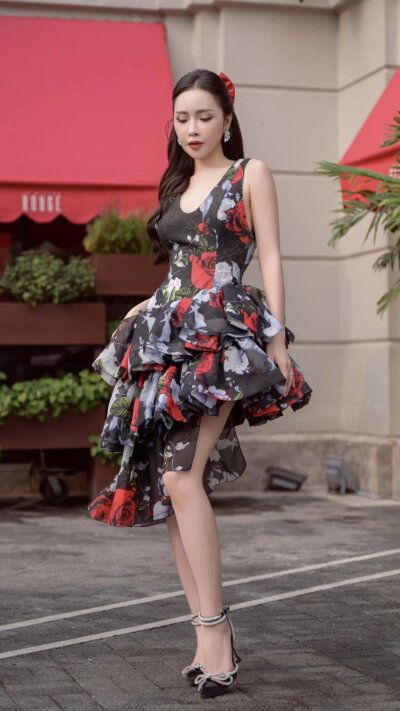 Đầm dạ hội cổ sâu Crimson Bloom 24S1W428006H011