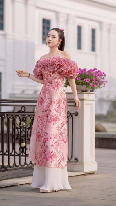 Áo dài vai trễ bèo lạ mắt Ethereal Charm 24S1W660006H021
