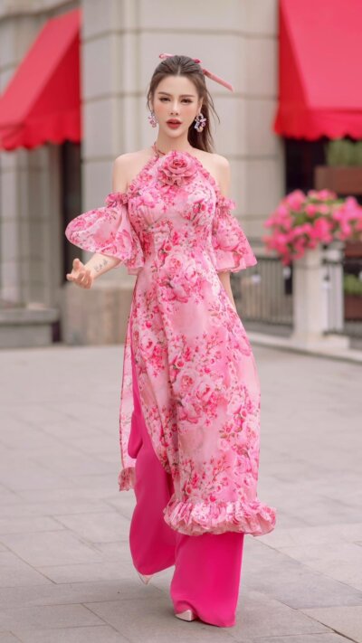 Áo dài cách tân cổ yếm bèo tay Dreamy Blossom 24S1W660007H021