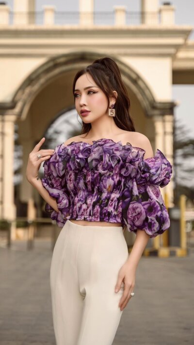 Áo crop trễ vai xếp nếp cầu kỳ Opal Bloom 25S1W134004H018