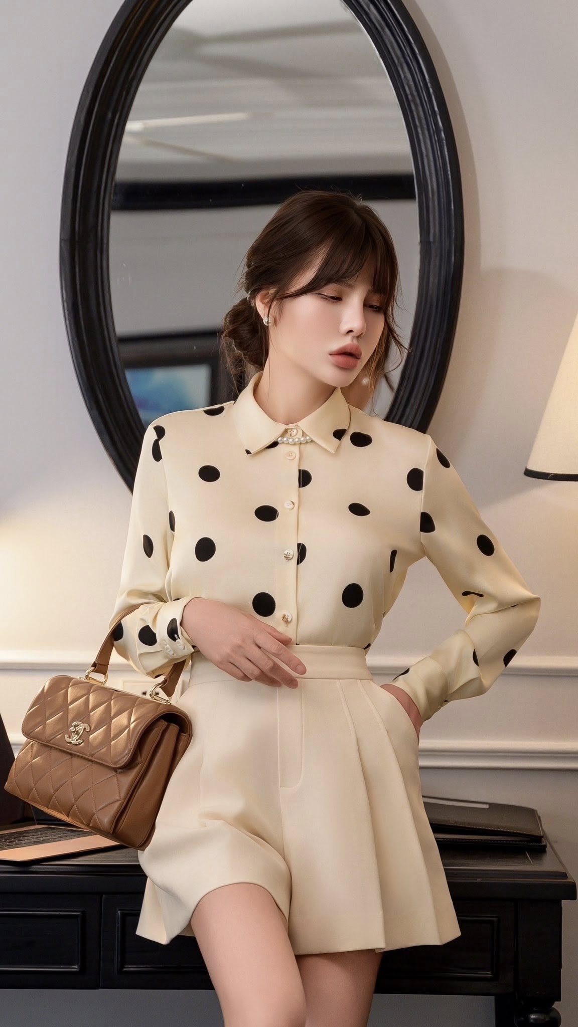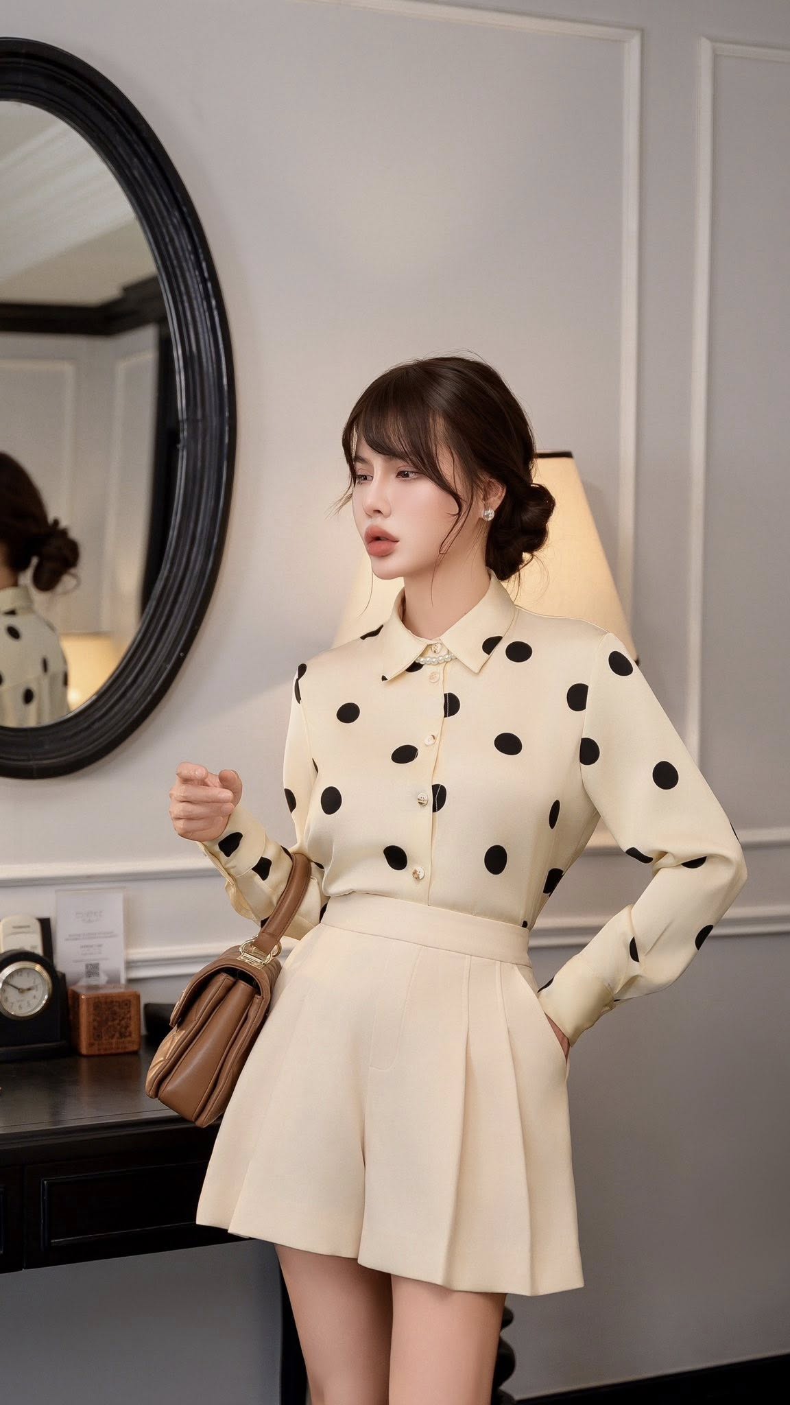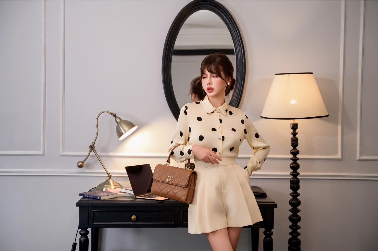Hãy là người đầu tiên nhận xét “Áo sơ mi cổ đức, dài tay , dáng xuông basic, phong cách Old money thanh lịch Ivory Promise 25S1W142006H010”