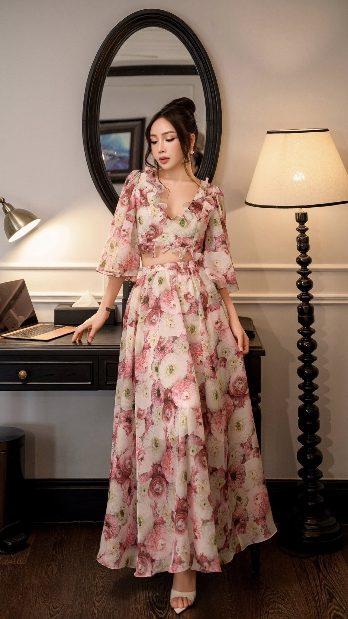 Chân váy maxi dài Satin Lullaby 25S1W322007H021