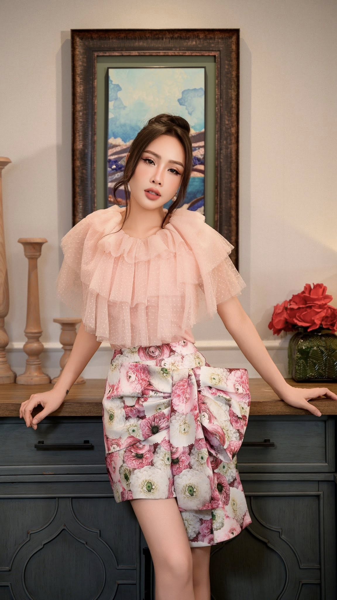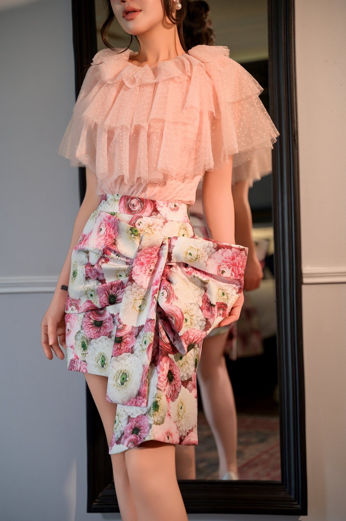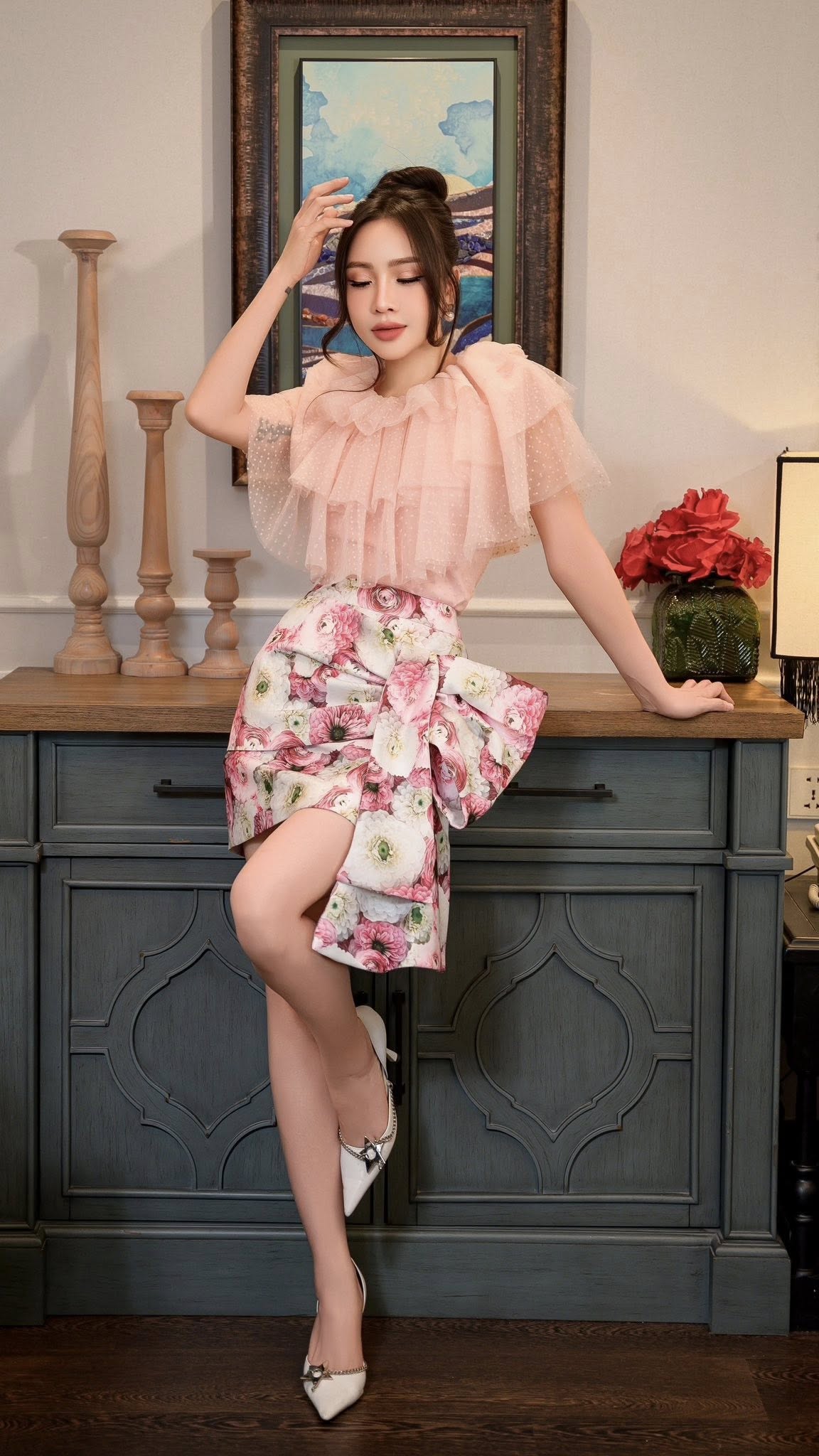 Áo dáng ôm 3 tầng bèo nhún, cổ tiểu thư Hushed Halo 25S1W132005T021