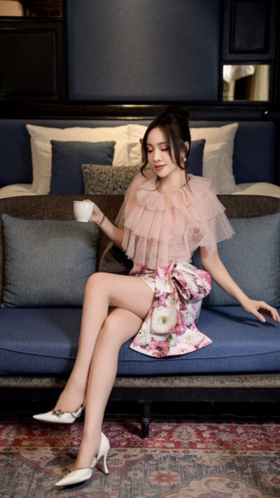 Hãy là người đầu tiên nhận xét “Áo dáng ôm 3 tầng bèo nhún, cổ tiểu thư Hushed Halo 25S1W132005T021”
