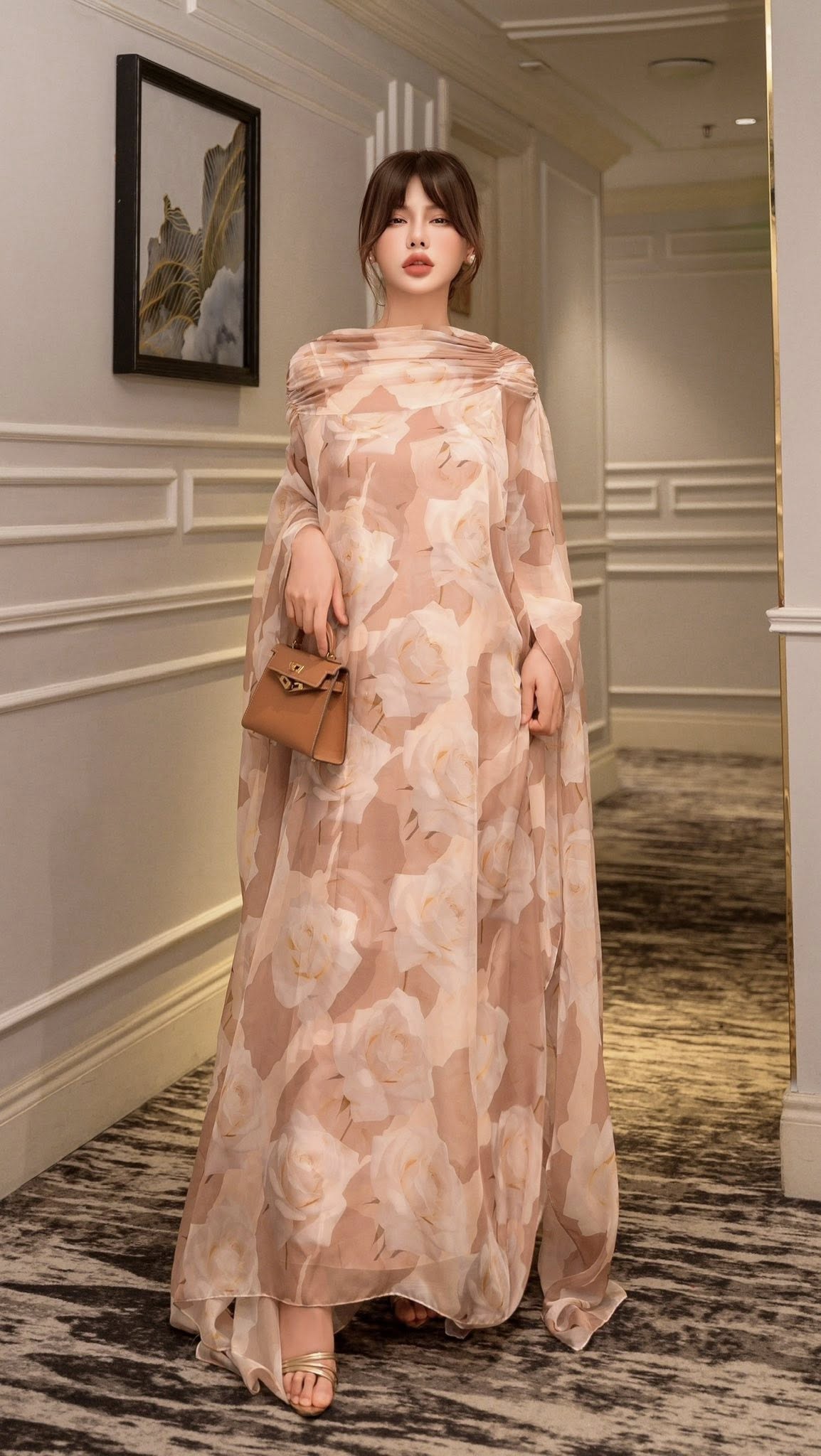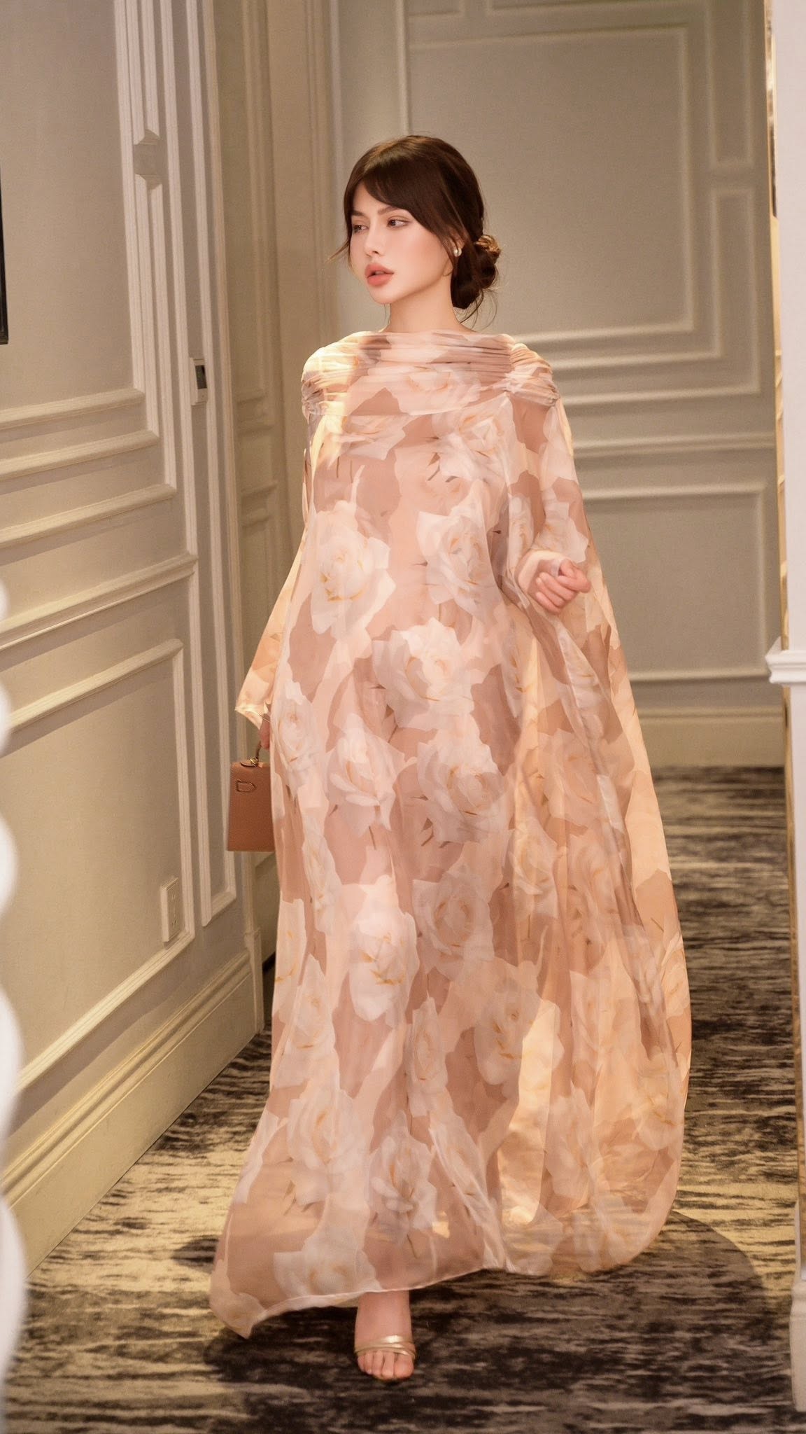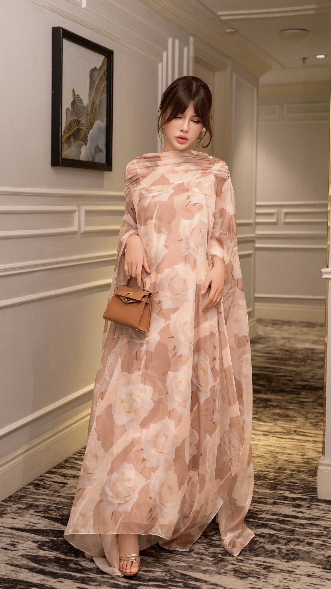 Đầm xuông maxi với phần tay liền rộng, cổ thân sau xẻ V có buộc dây Seraphic Poise 25S1W462001H021