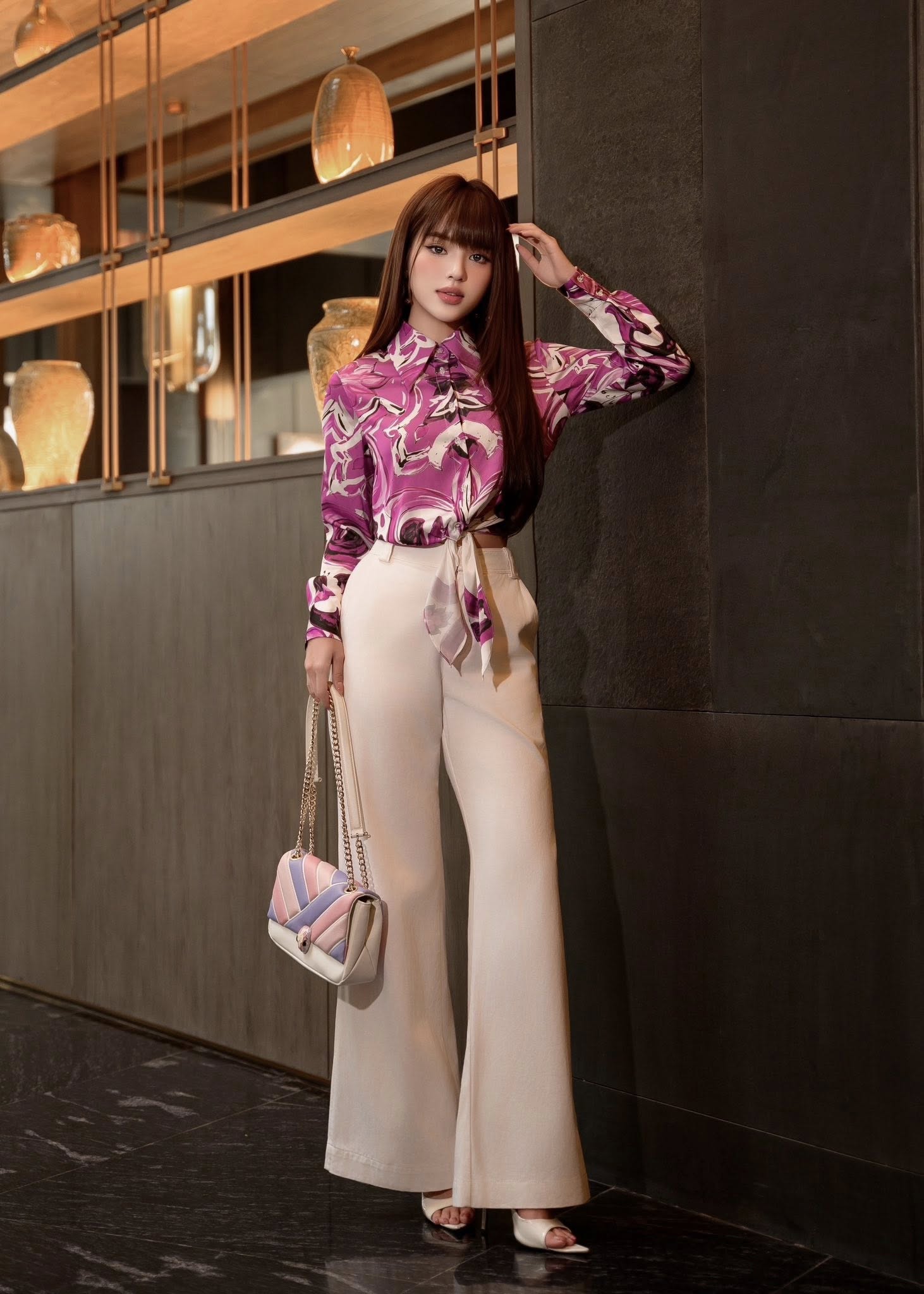 Hãy là người đầu tiên nhận xét “Quần dài ống xuông đứng Anima Sovrana 25S1W250903T010”