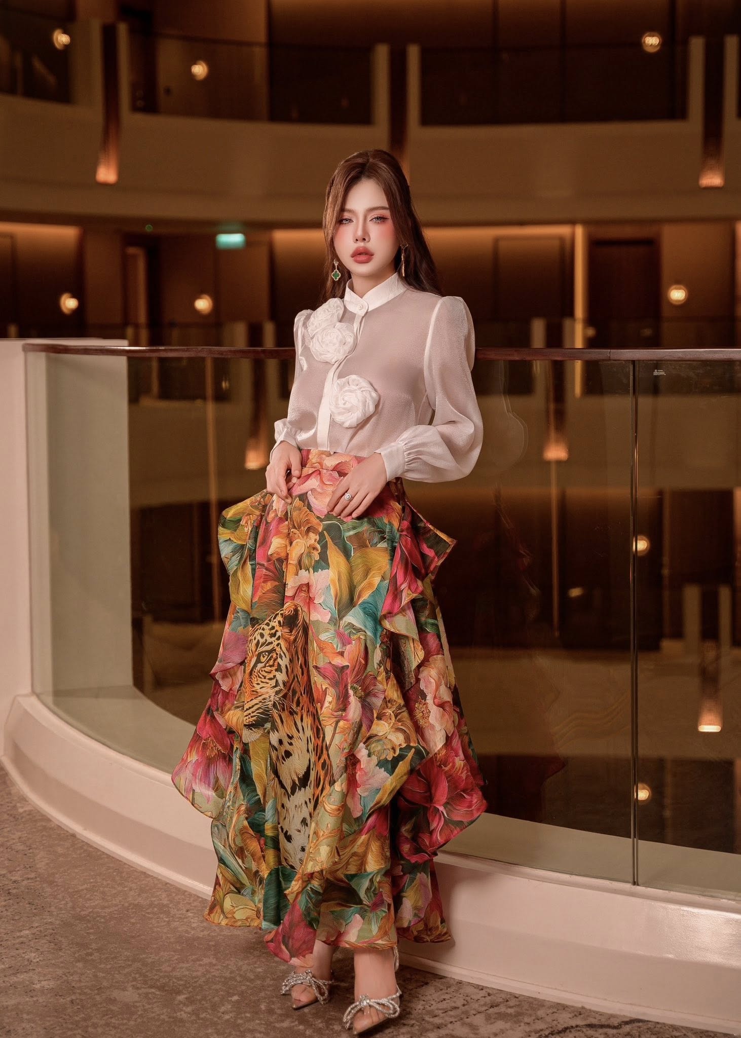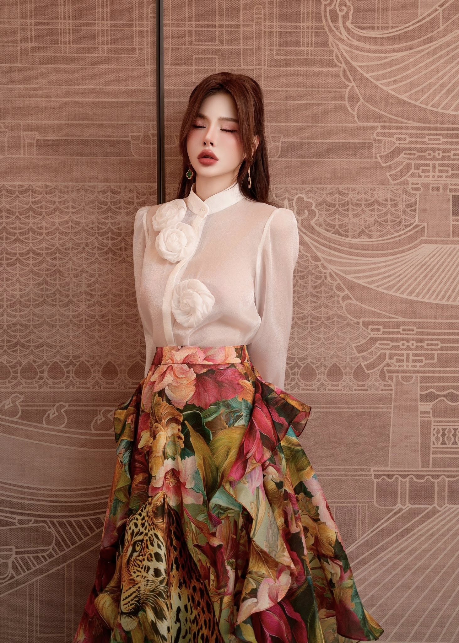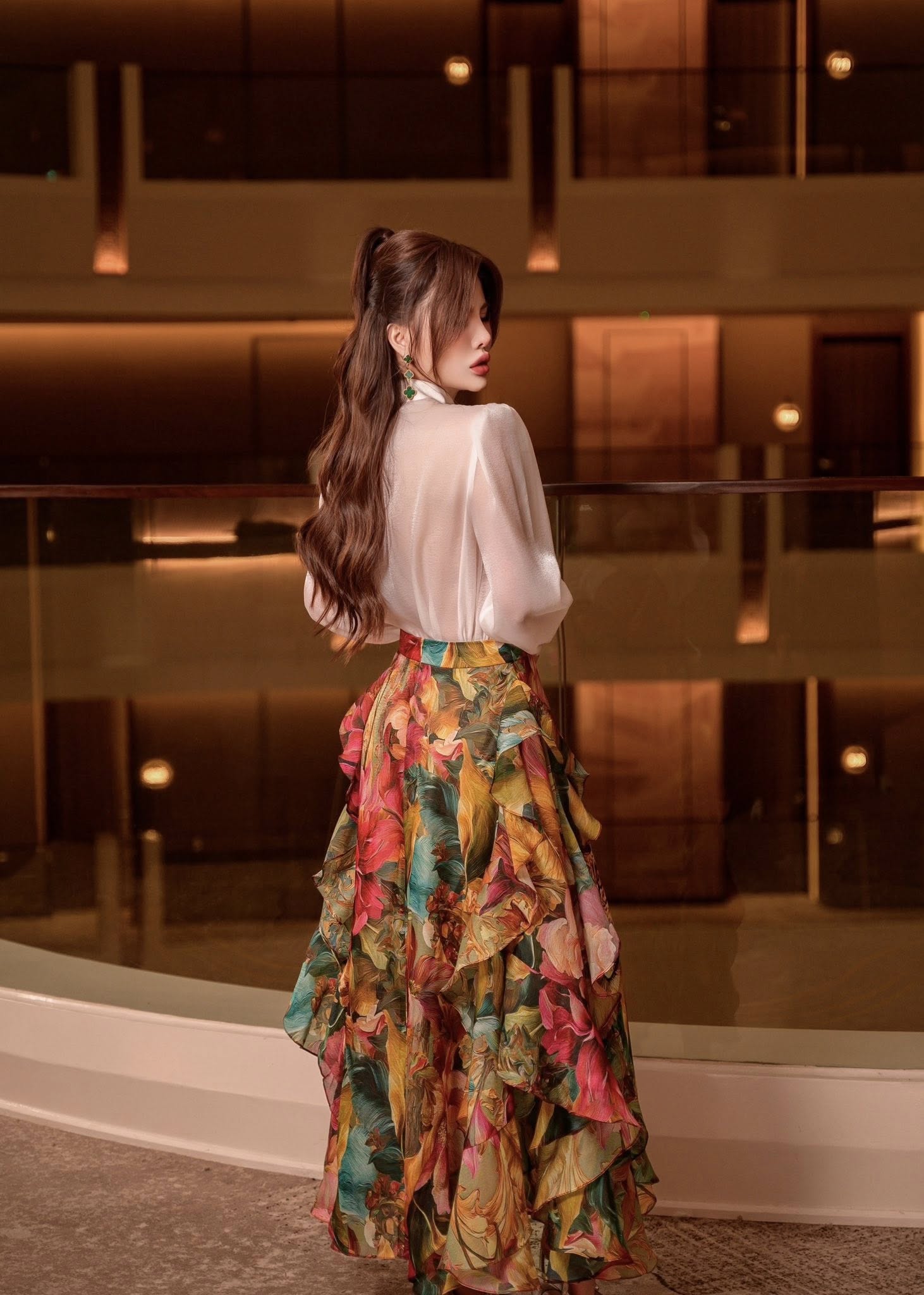 Chân váy xòe midi cắt ghim bèo đẹp mắt và trẻ trung Crimson Spirit 25S1W320707H013