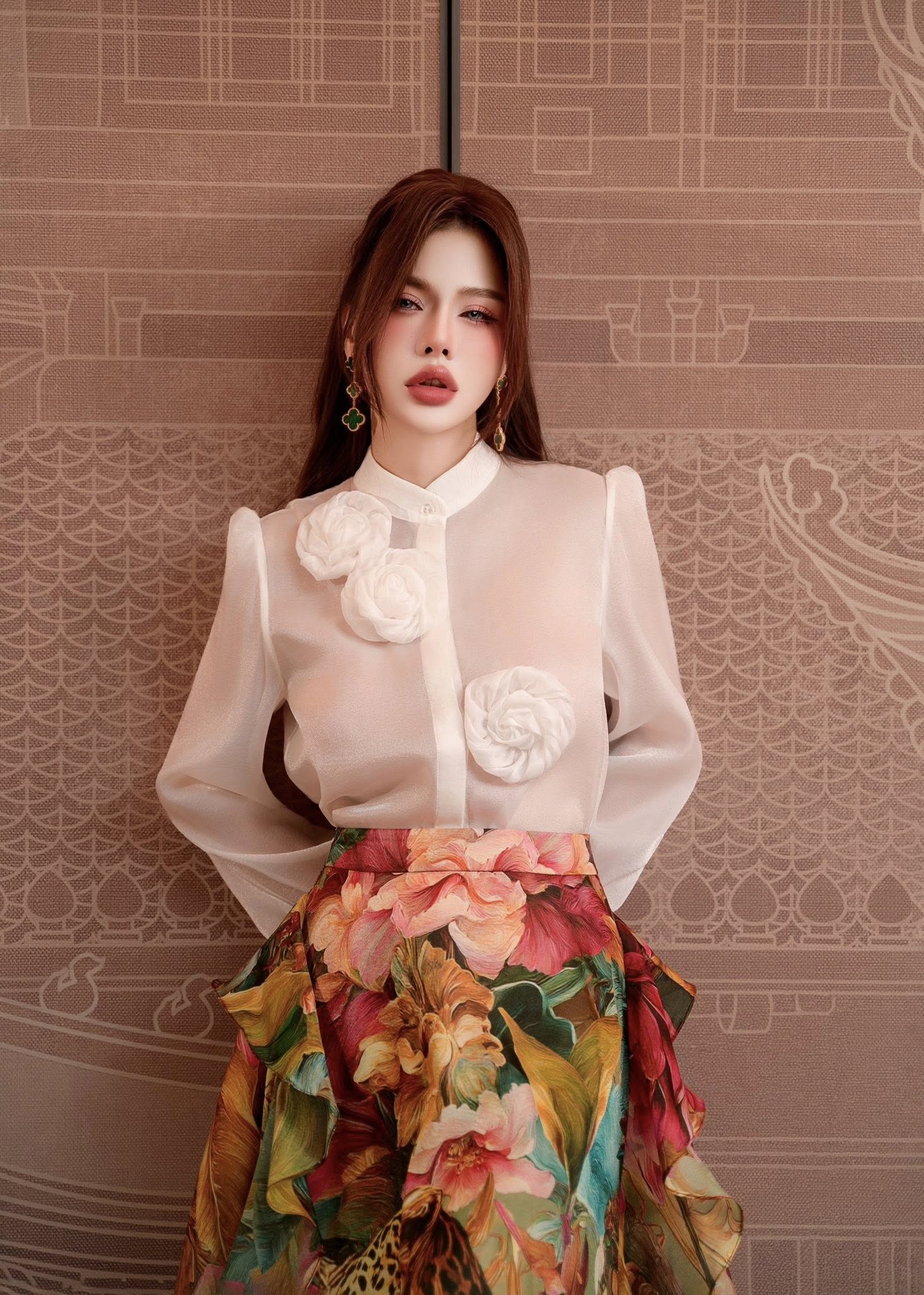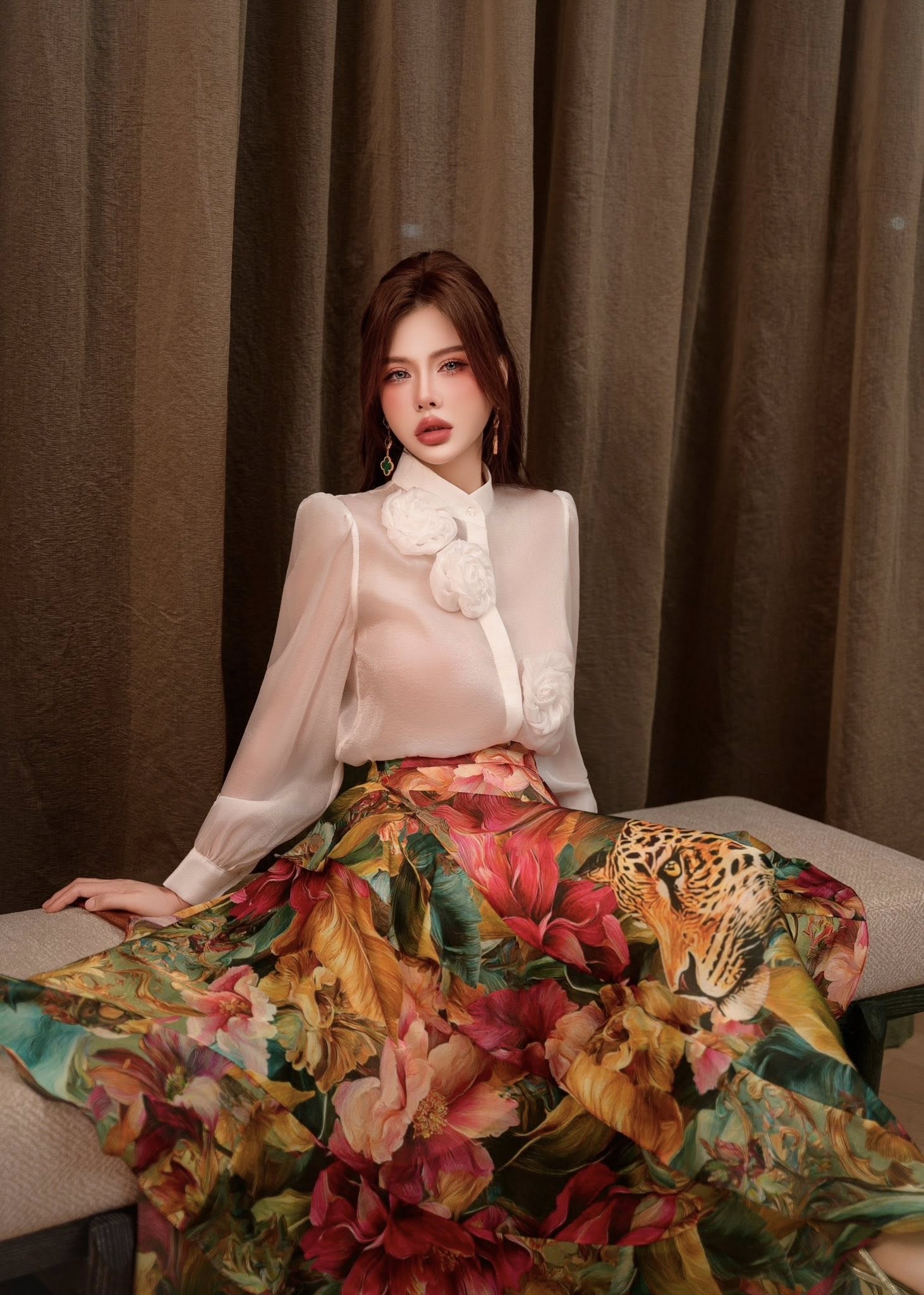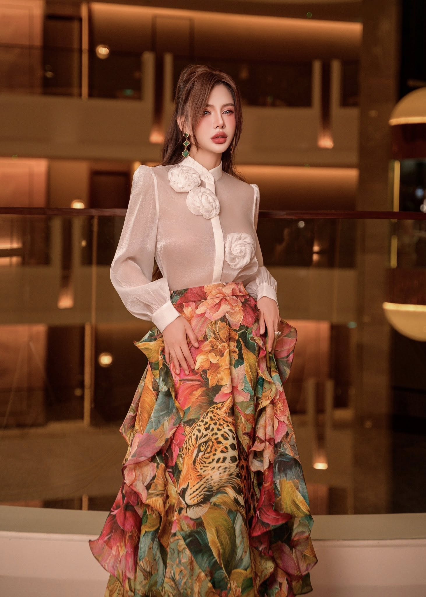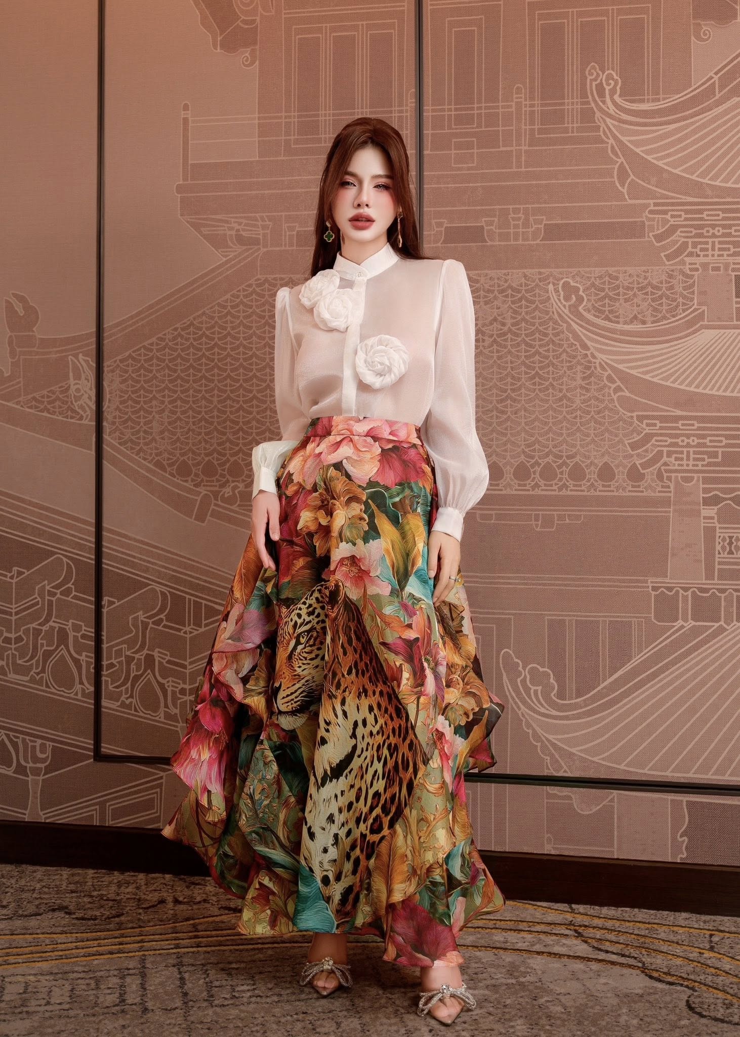 Chân váy xòe midi cắt ghim bèo đẹp mắt và trẻ trung Crimson Spirit 25S1W320707H013
