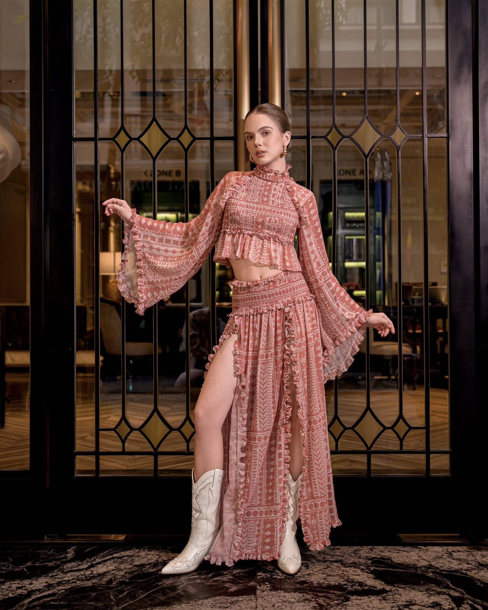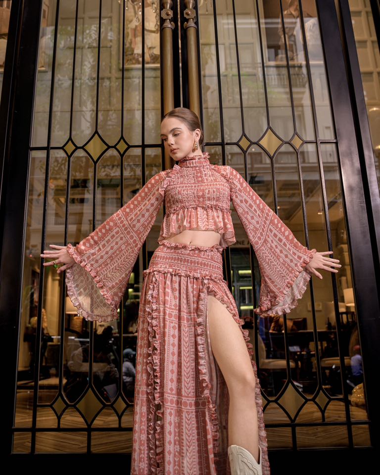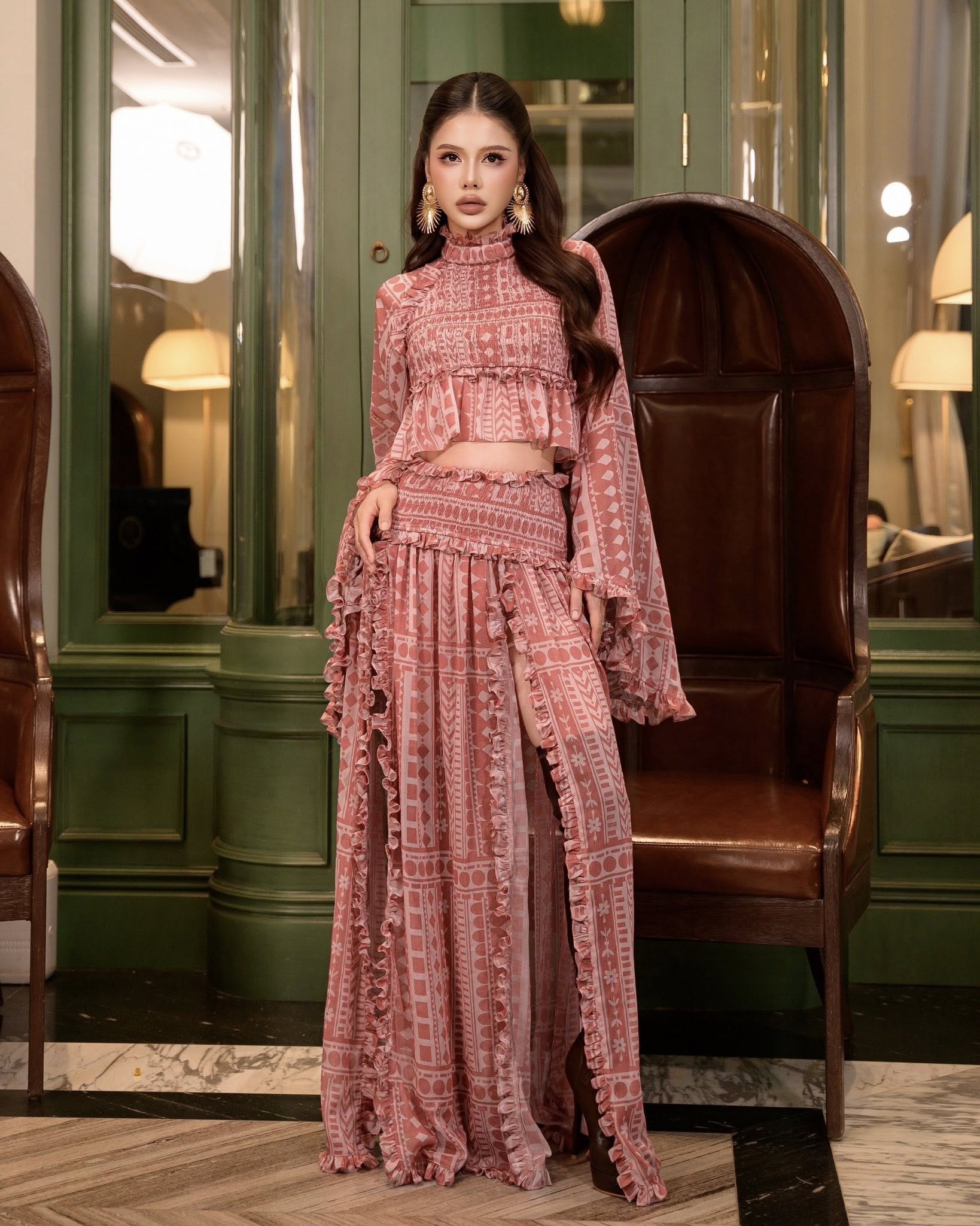 Áo croptop tay loe dài Lumière intérieure 25S1W140506T022