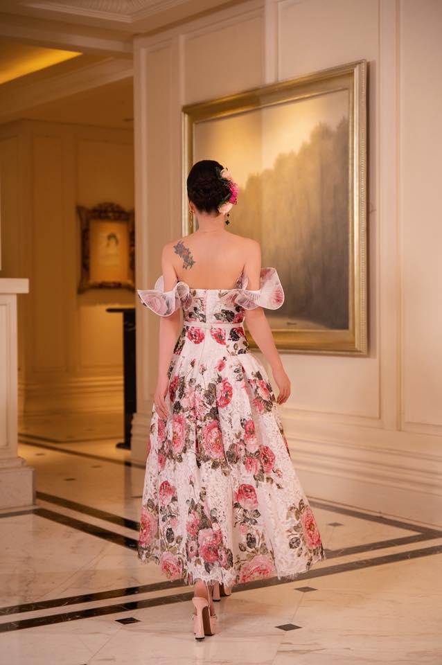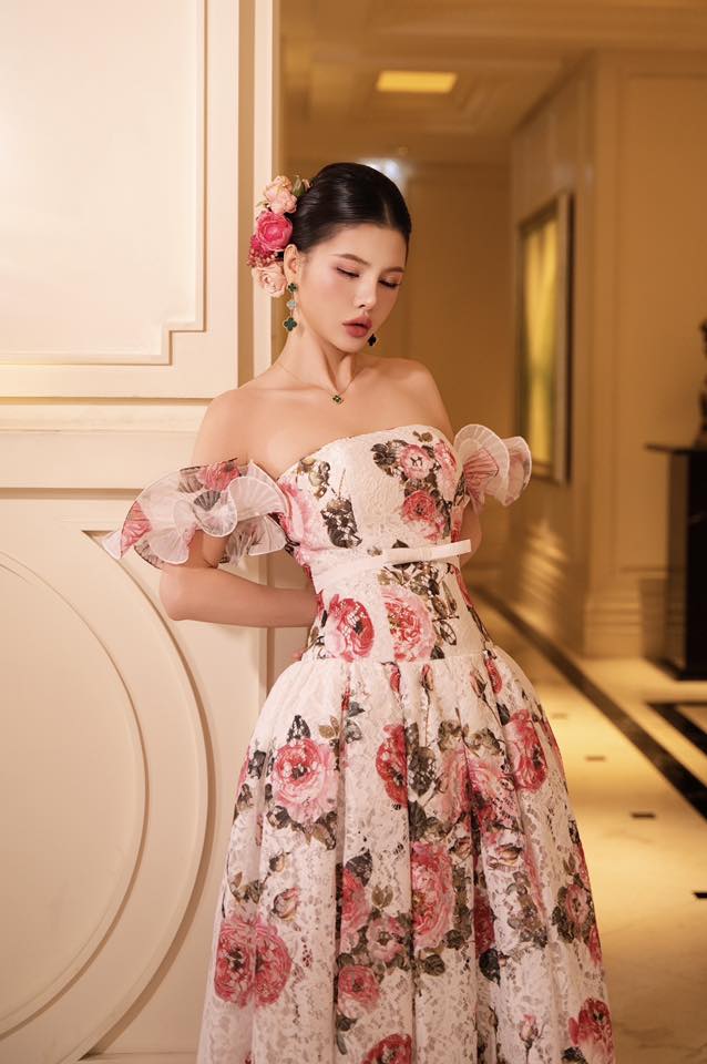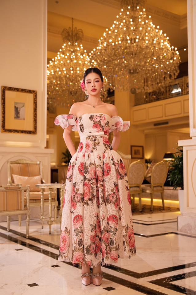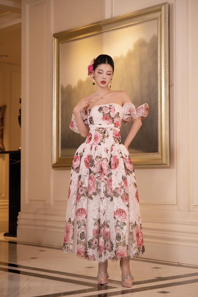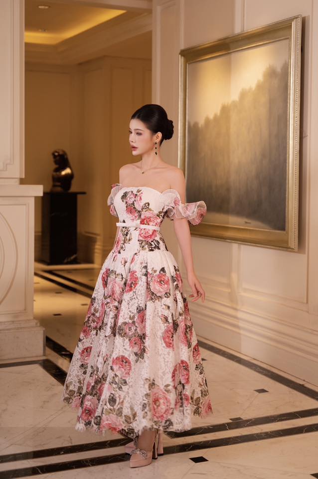 Đầm xòe trễ vai party Rose Sovereign 25S1W430202H021