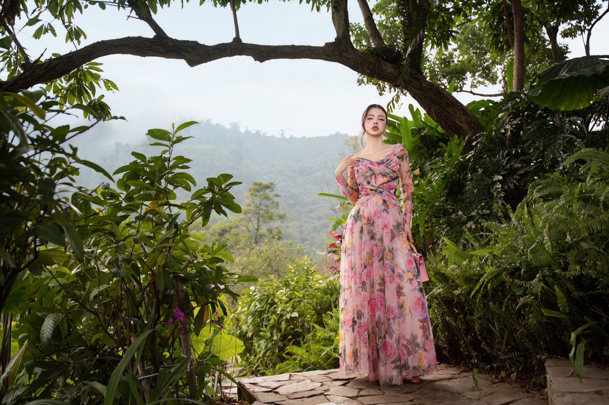 Đầm maxi dự tiệc nhẹ nhàng xếp vải cầu kỳ đan chéo Pure Neva 26S1W440305H021