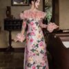 Áo dài trễ vai xếp hoa laser đẹp mắt Core Neva 25S1W660103H021